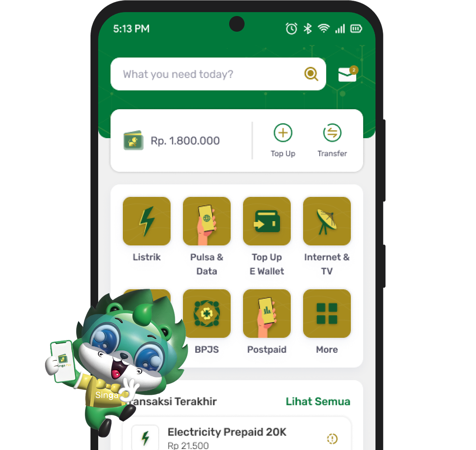 Melalui aplikasi SingaPay, Anda dapat melakukan top up saldo, pembayaran, dan berbagai transaksi digital dengan mudah, cepat, dan aman.